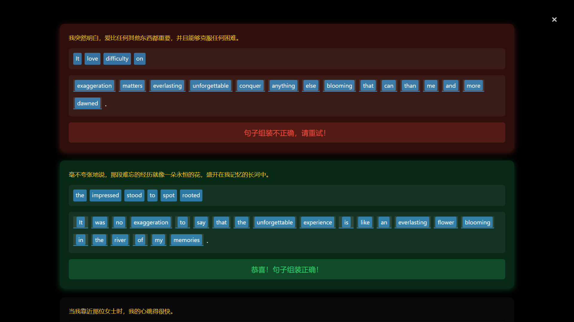 [其他求助] 求助各位大佬,为英语句子学习的html增加连词成句功能,具体要求如下。 |