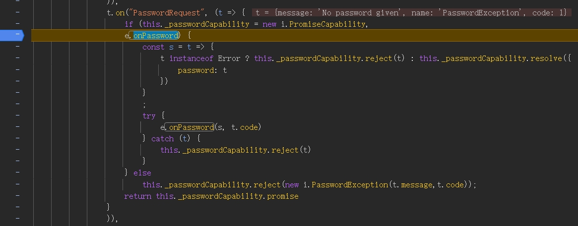 如果偷懒,可以在e.onPassword的第一回调参数(也就是上面的s函数)下断点,
